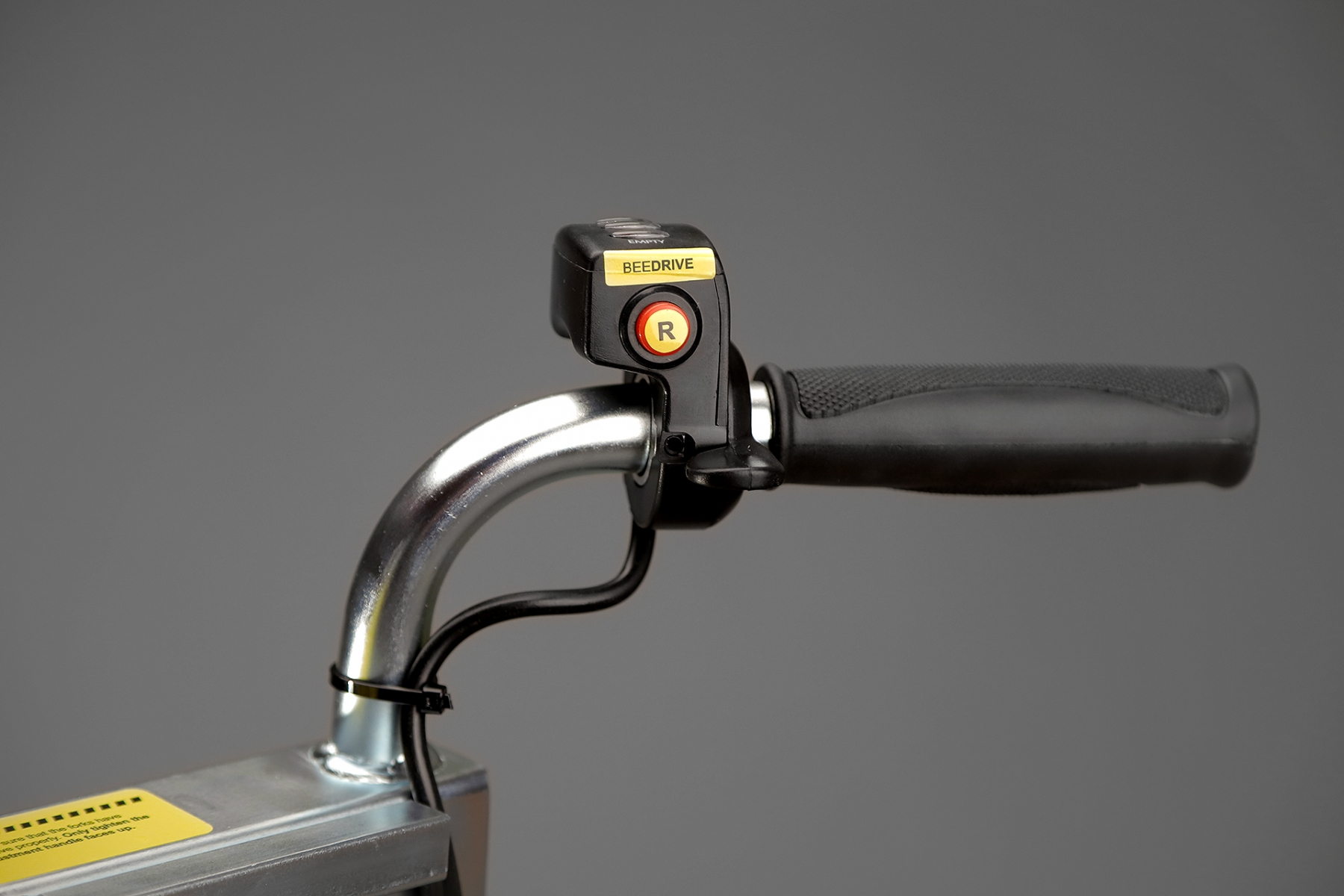 Spustenie bolo jednoduché – nohou som stlačil prepínač a vozík sa rozsvietil. Okamžite sa ozvalo pípnutie, ktoré signalizovalo zaradenú spiatočku. Toto považujem za veľké plus – človek má vždy prehľad, v akom režime vozík je.